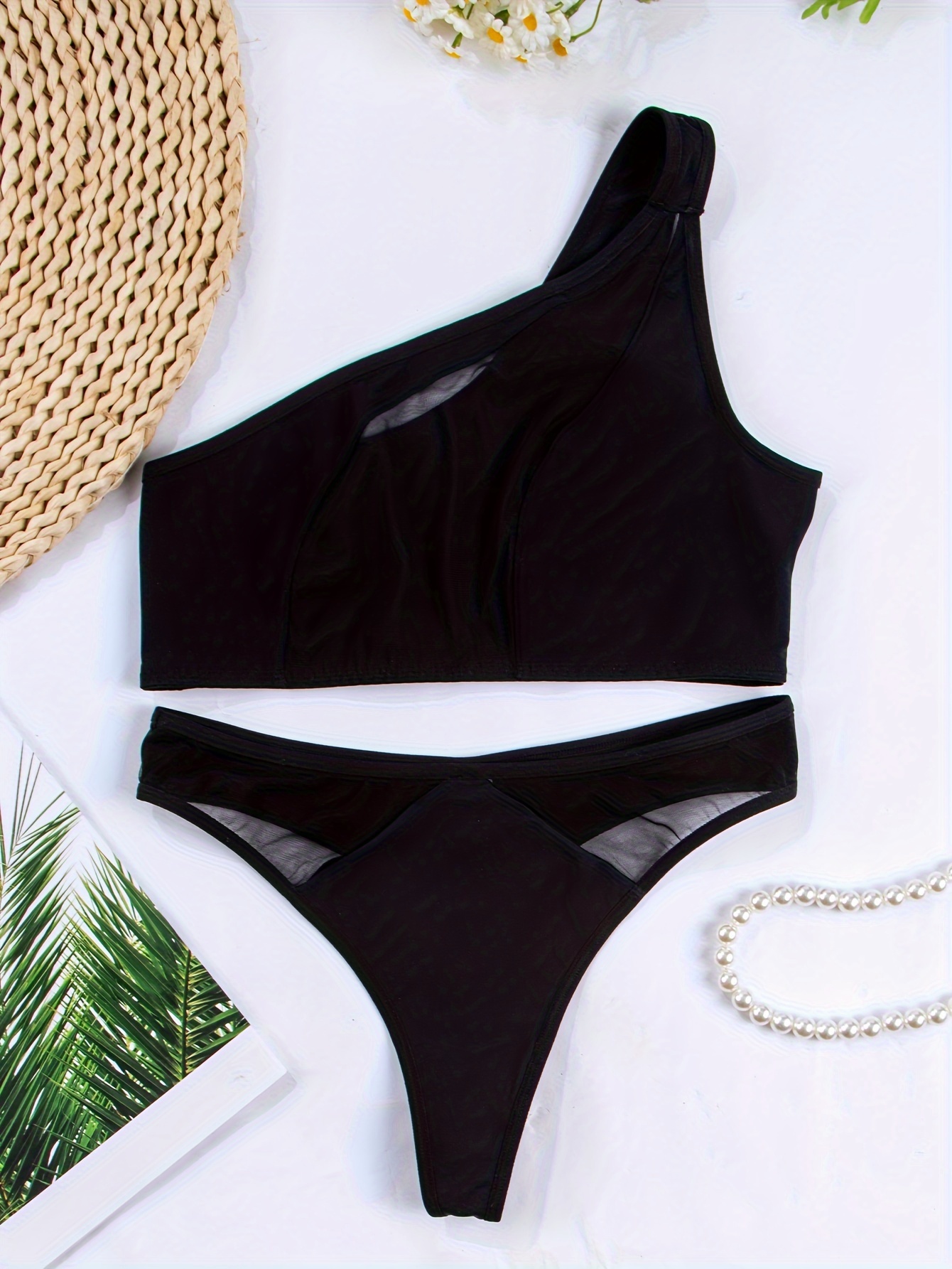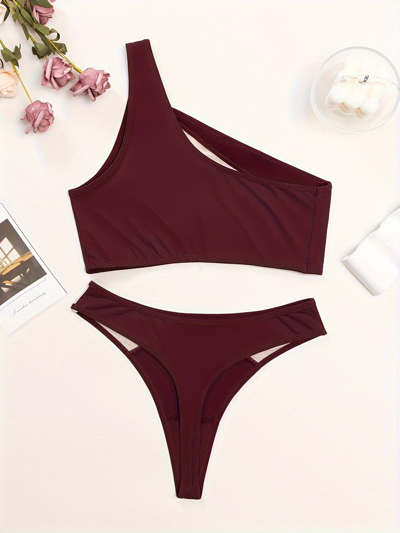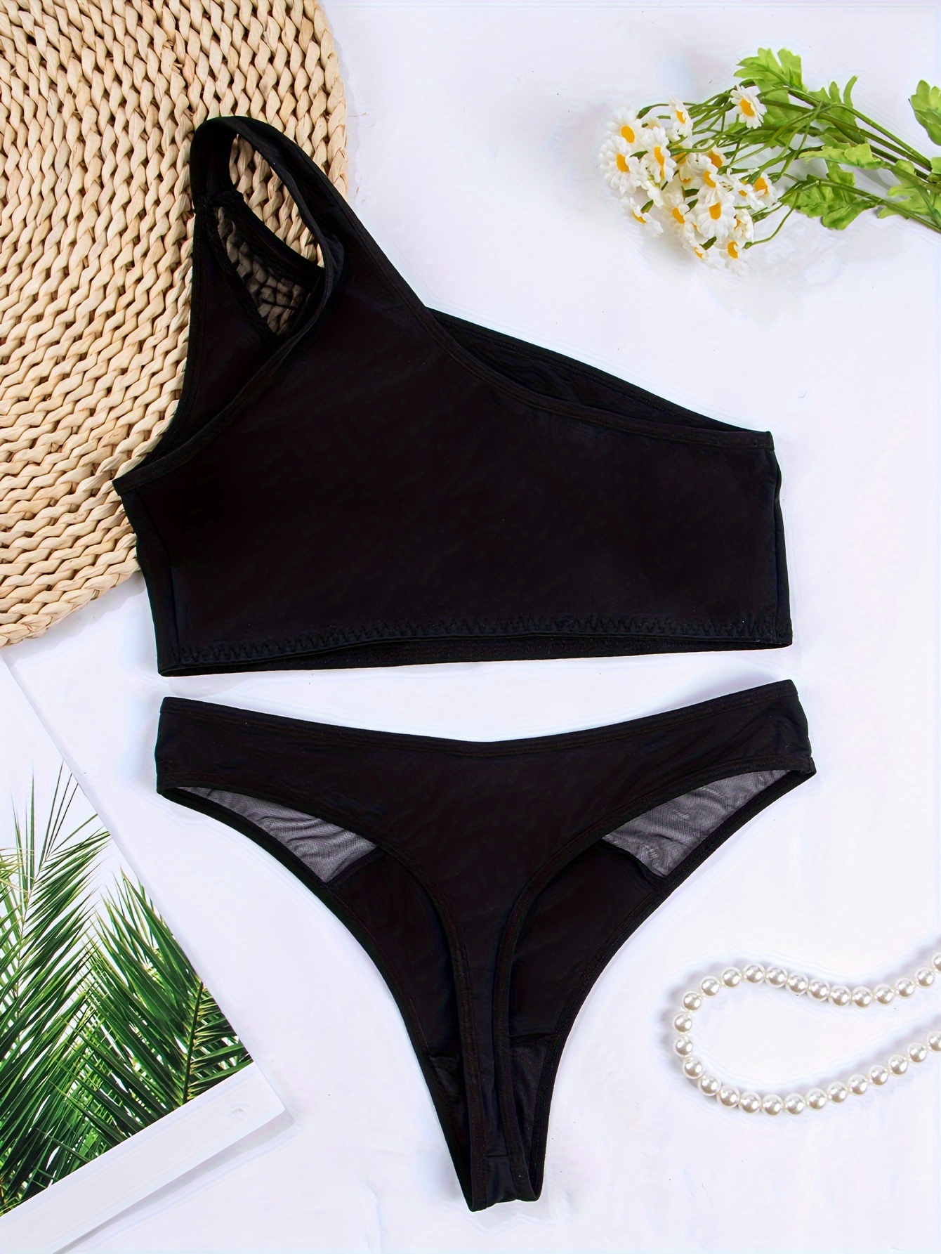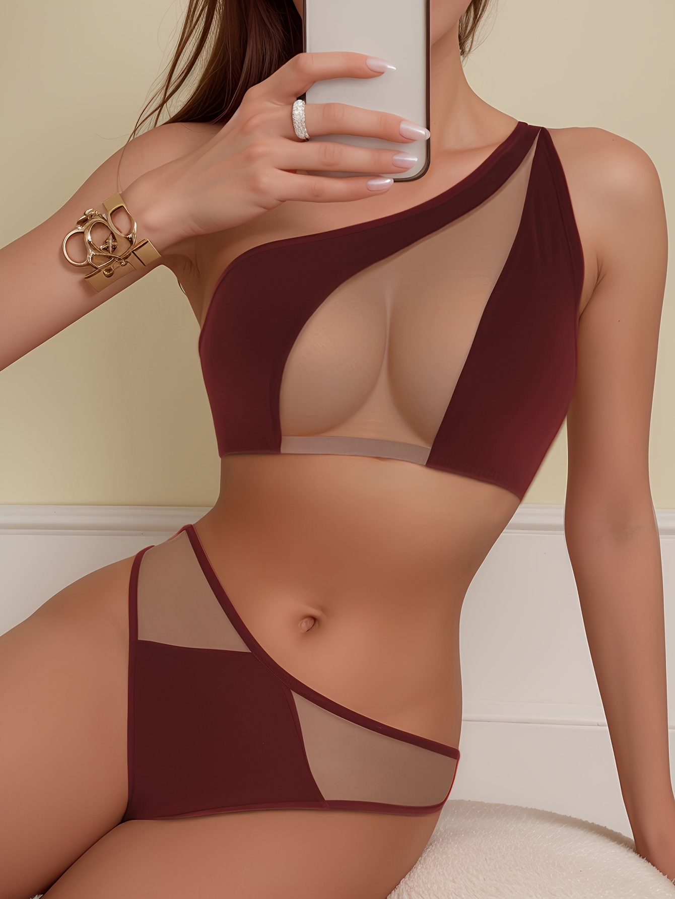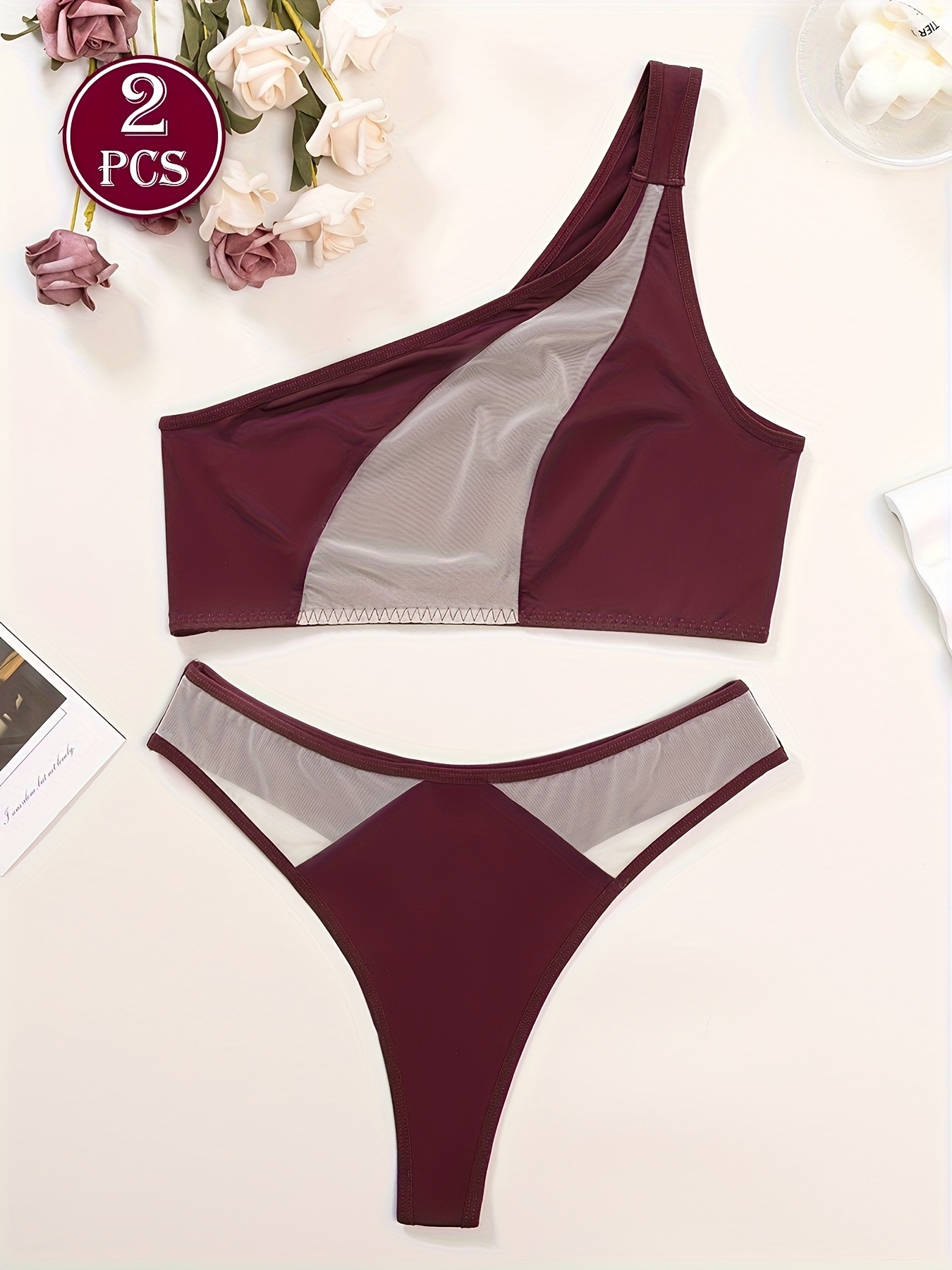 1 set, Women’s mesh transparent off-shoulder bra set, matching sexy underwear