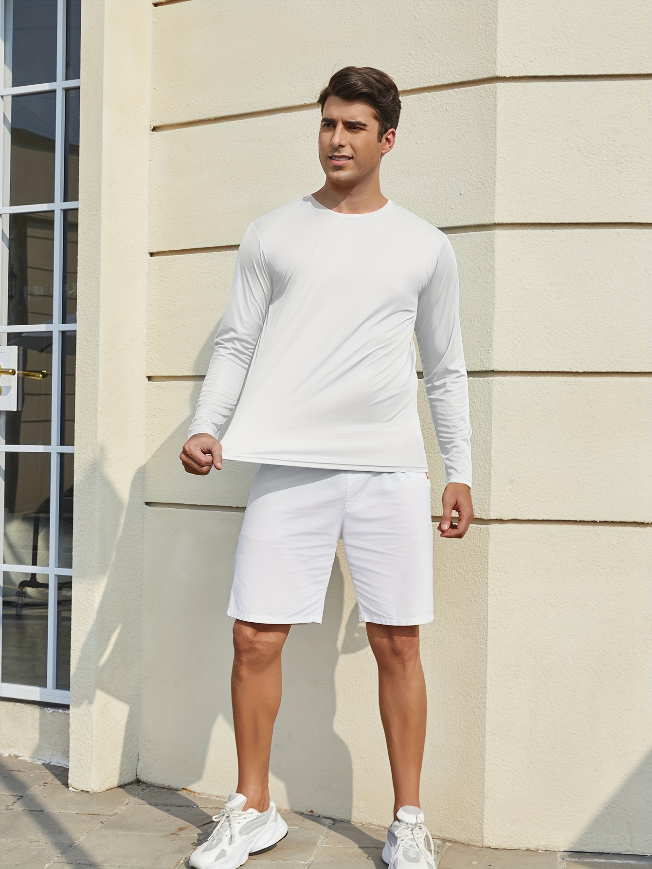 The quick-dry breathable material wicks away moisture, keeping you cool during workouts, outdoor activities, or daily wear. With long sleeve coverage for extra sun protection and a classic solid color style, these versatile shirts pair effortlessly with jeans, shorts, or activewear.