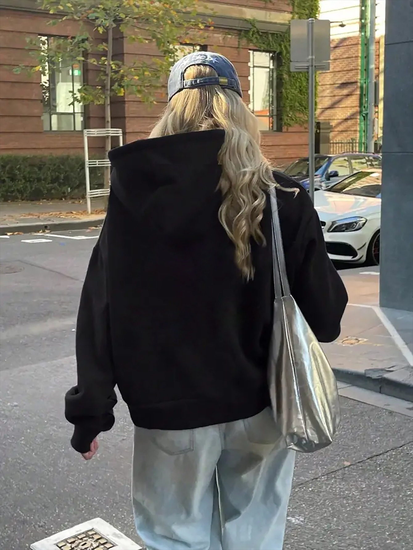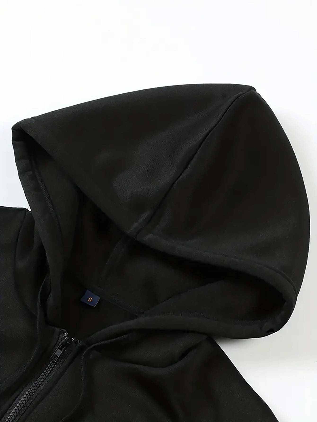 Black Women’s hooded zipper coat with “4F” logo on the front and sleeve