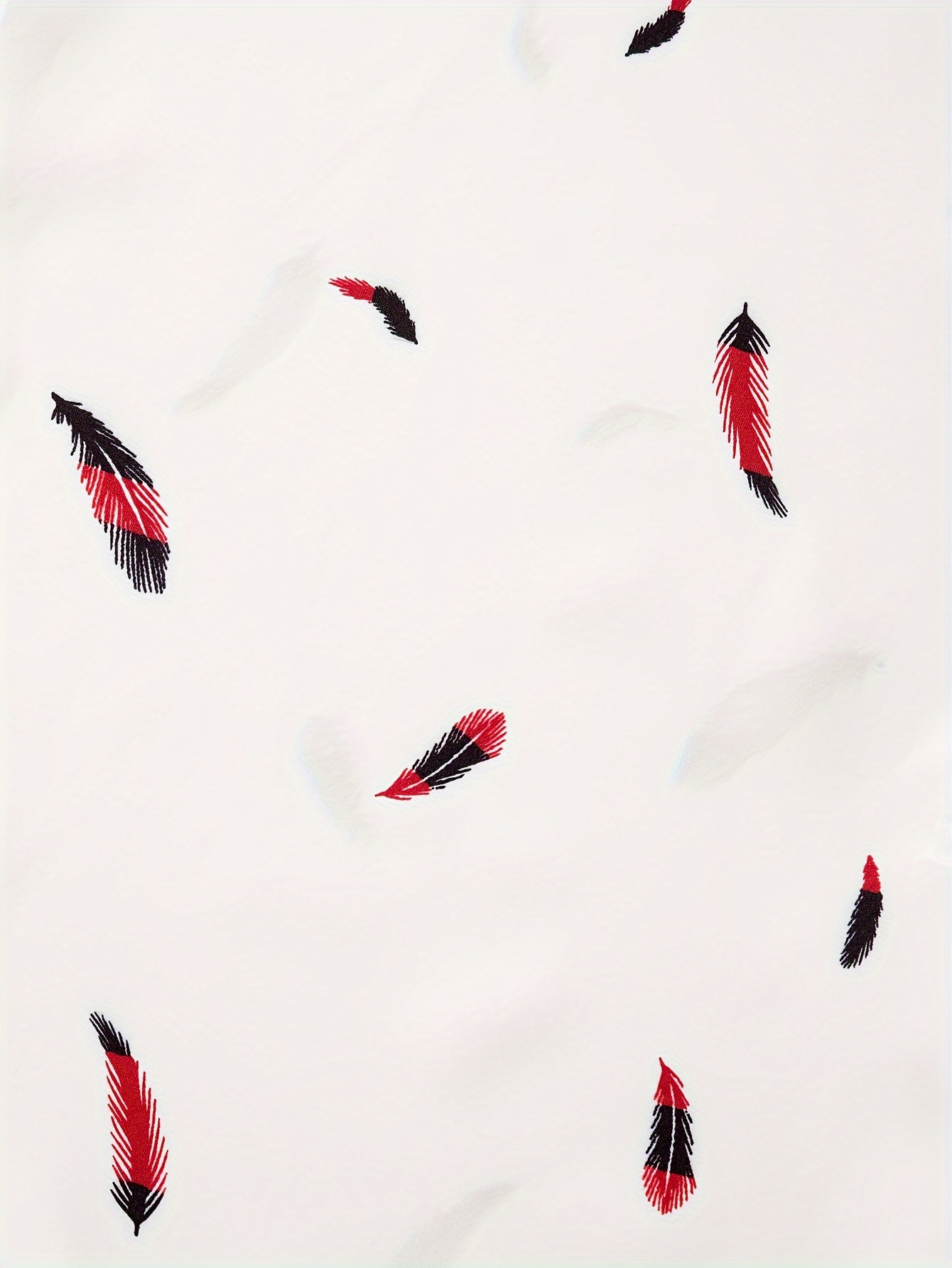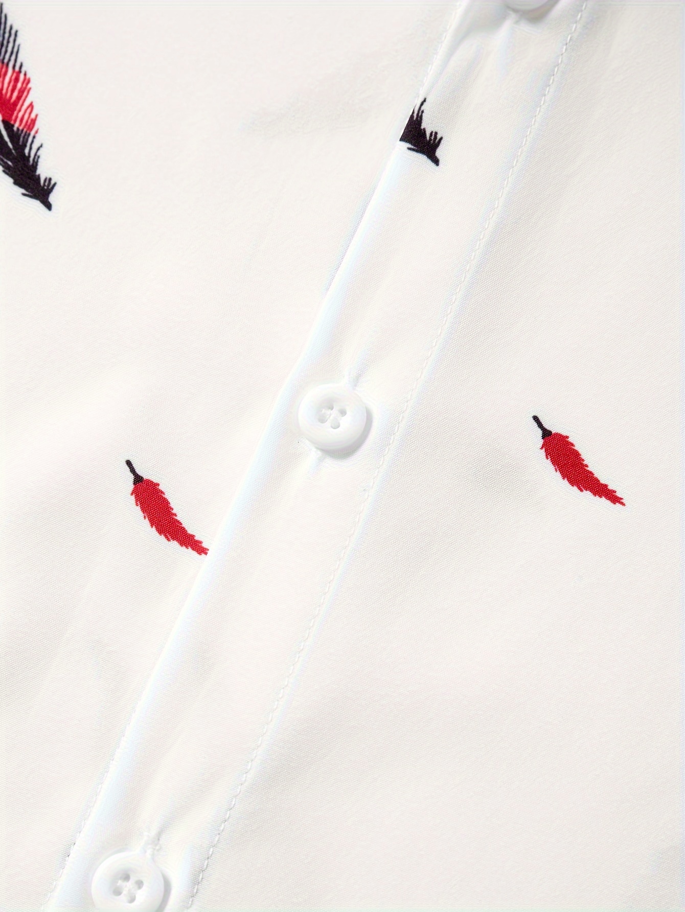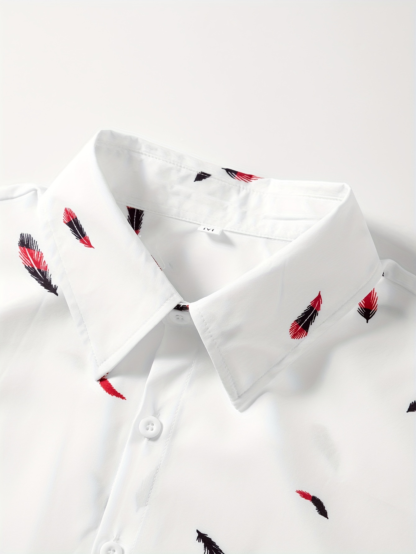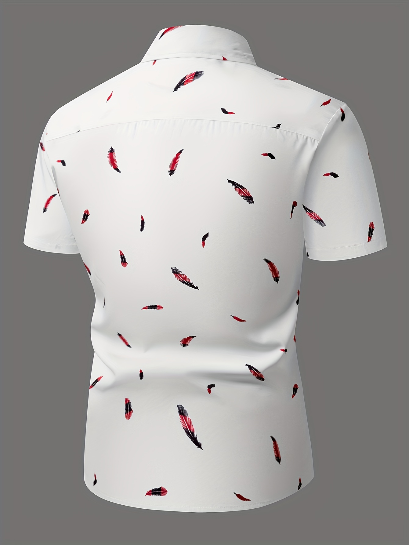 Feather Print Men’s Summer Fashionable And Simple Short Sleeve Button Casual Lapel Simple Shirt, Trendy And Versatile, Suitable For Dates, Beach Holiday, As Gifts