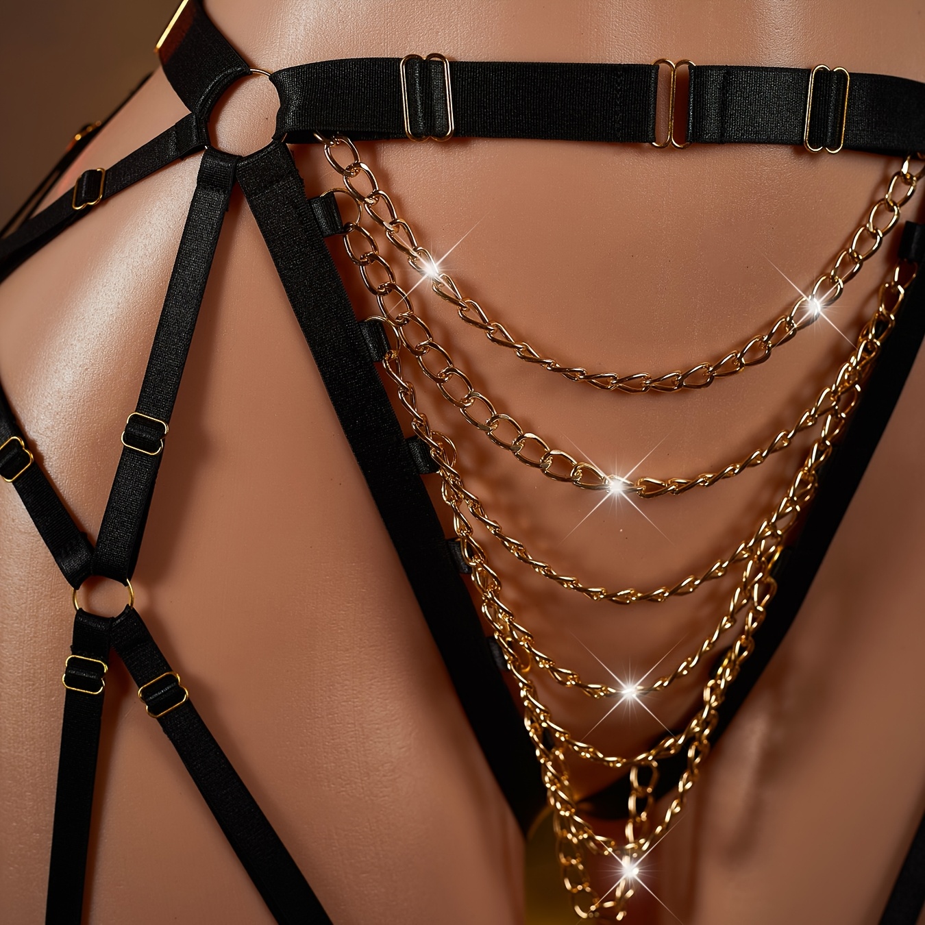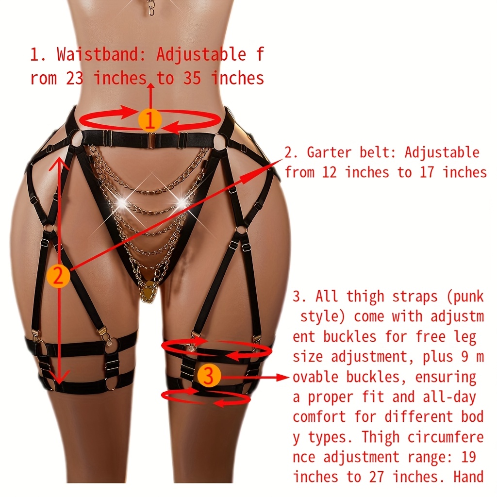 Ladies’ High-Waisted Garter Belt with Adjustable Hollow Leg Rings And Metal Chain Decorations, Suitable for Various Body Types. Made from Elastic And, Featuring a Punk Street Style with Straps, Perfect for Parties, Weddings, Beach Outings