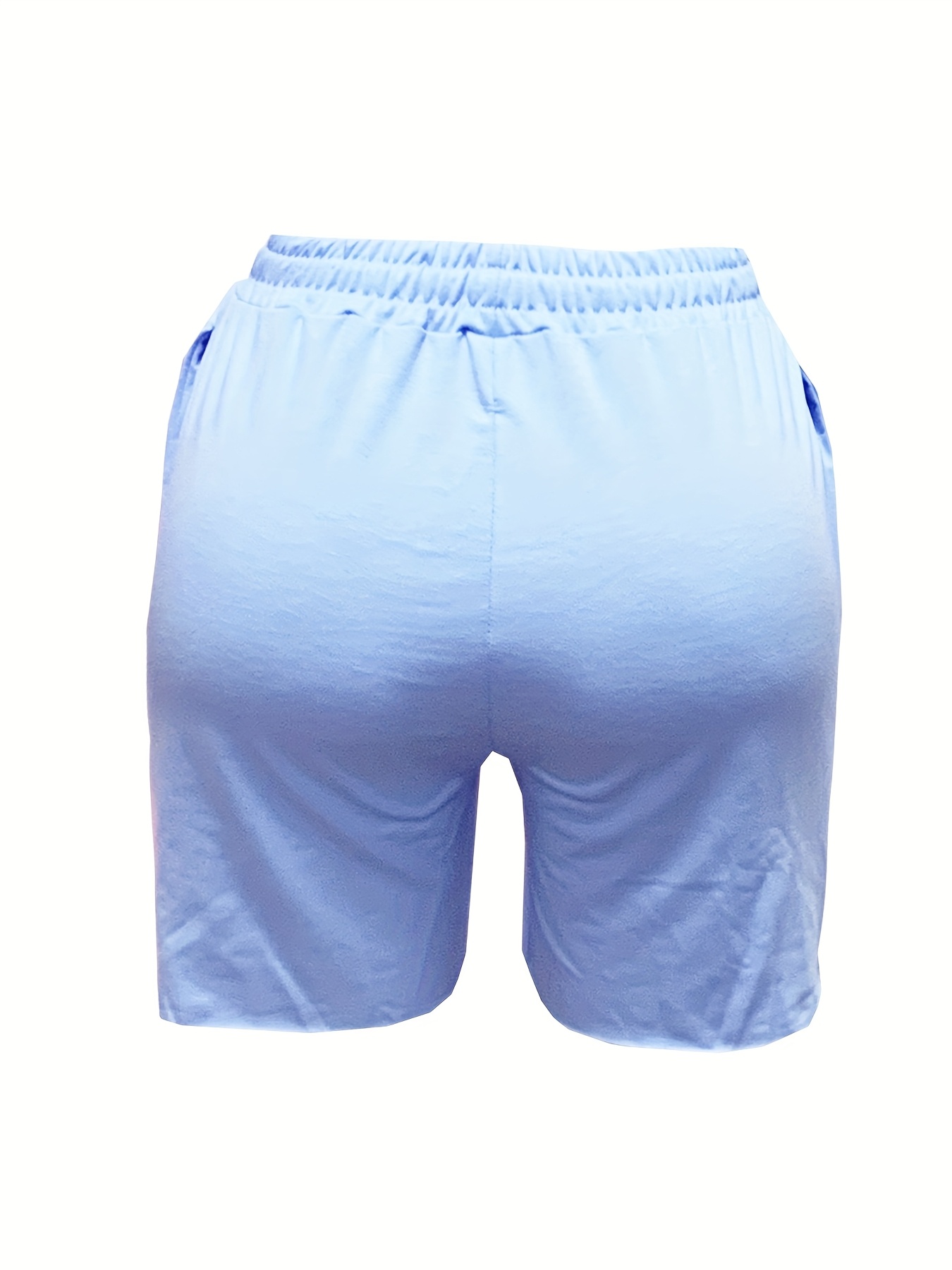 Light Blue Fashionable Women’s Drawstring Shorts Solid Color Casual Pants