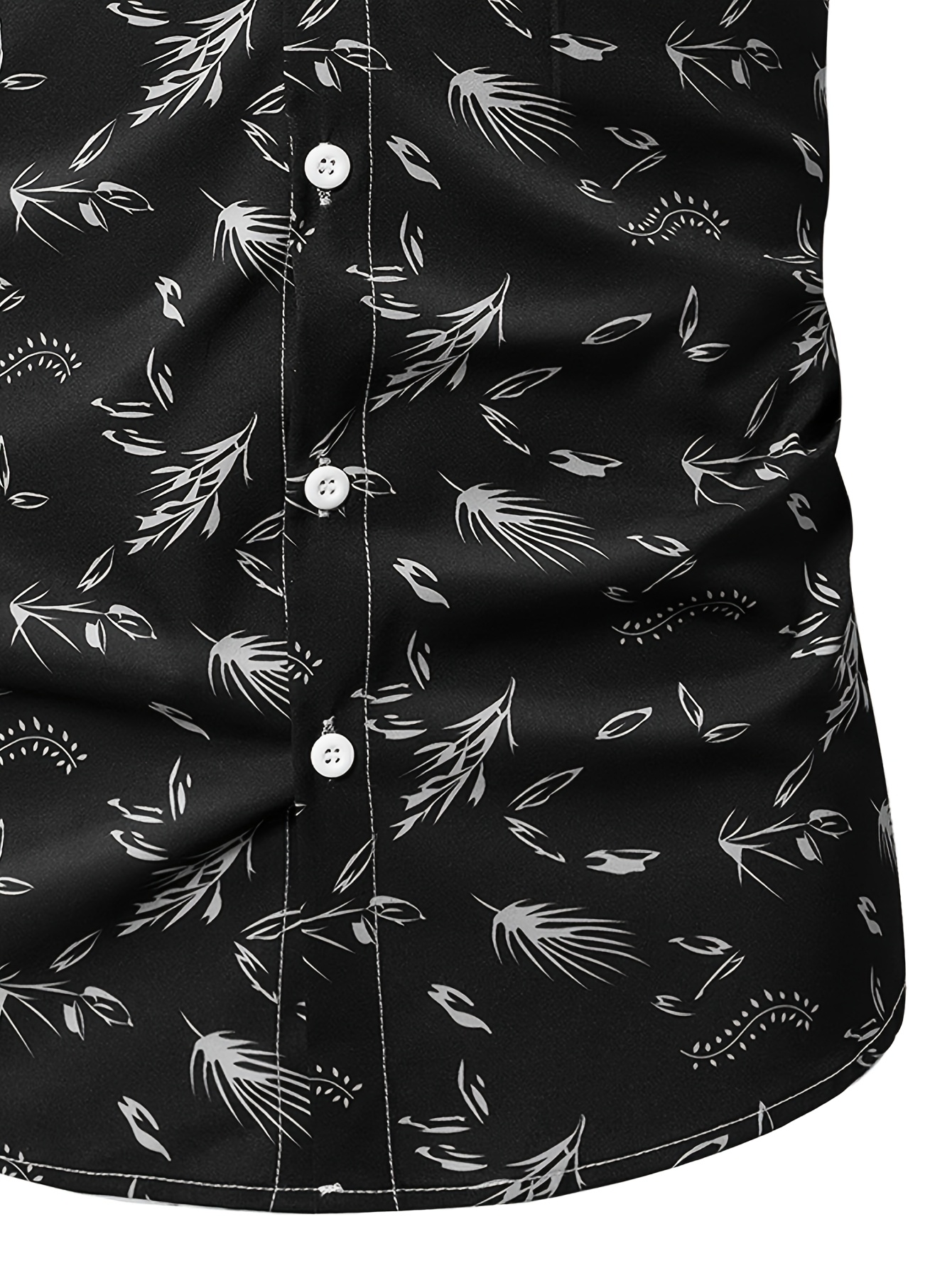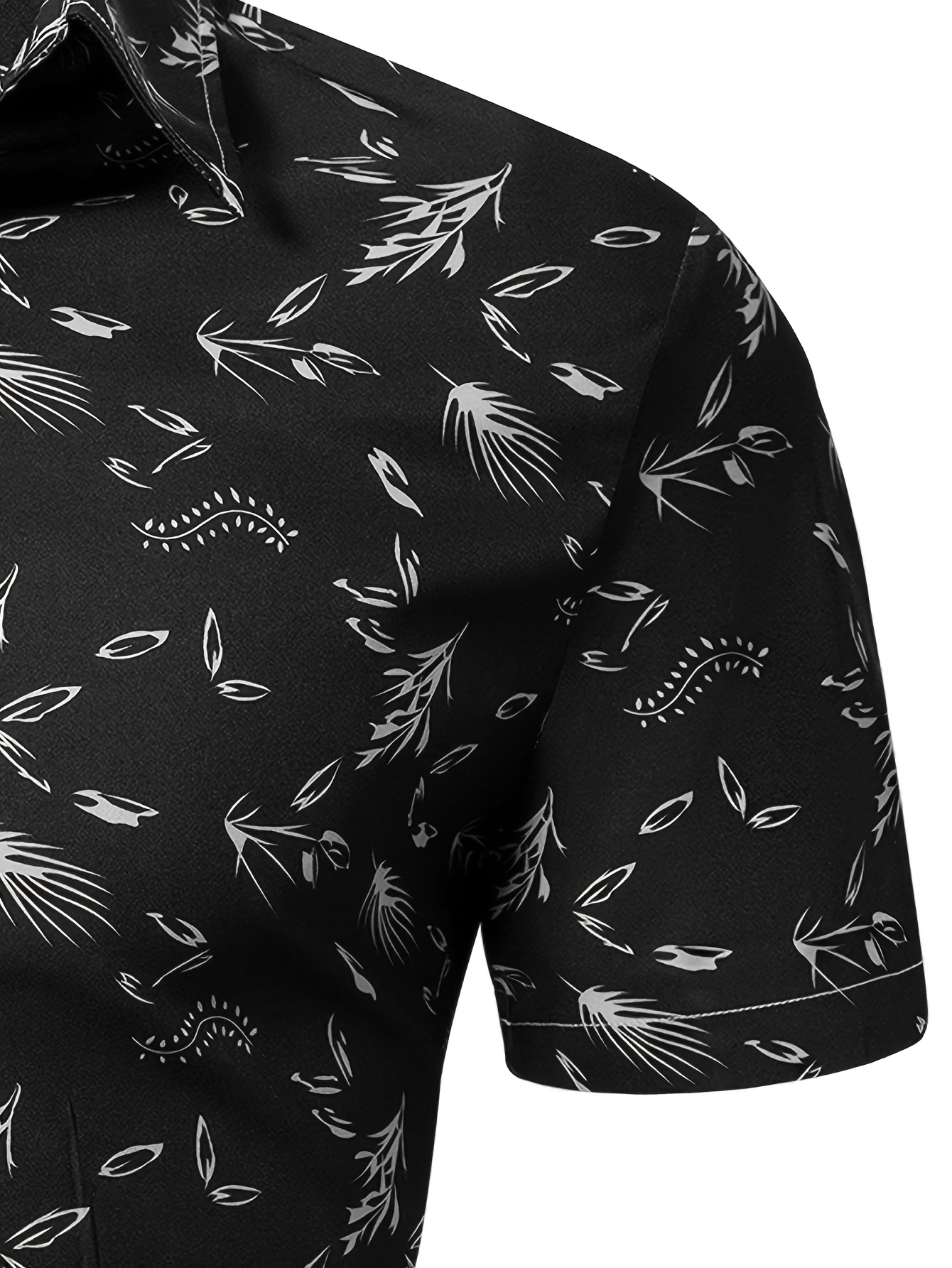 Men’s Casual Black Tropical Leaf Print Short Sleeve Button-Up Shirt – Lightweight Polyester, Relaxed Fit, Summer Resort Wear, Hand Wash or Dry Clean