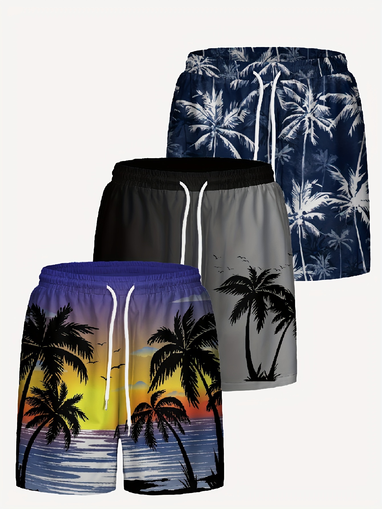 Men’s Hawaiian Shorts 3-Pack – Palm Tree Print Summer Beachwear
