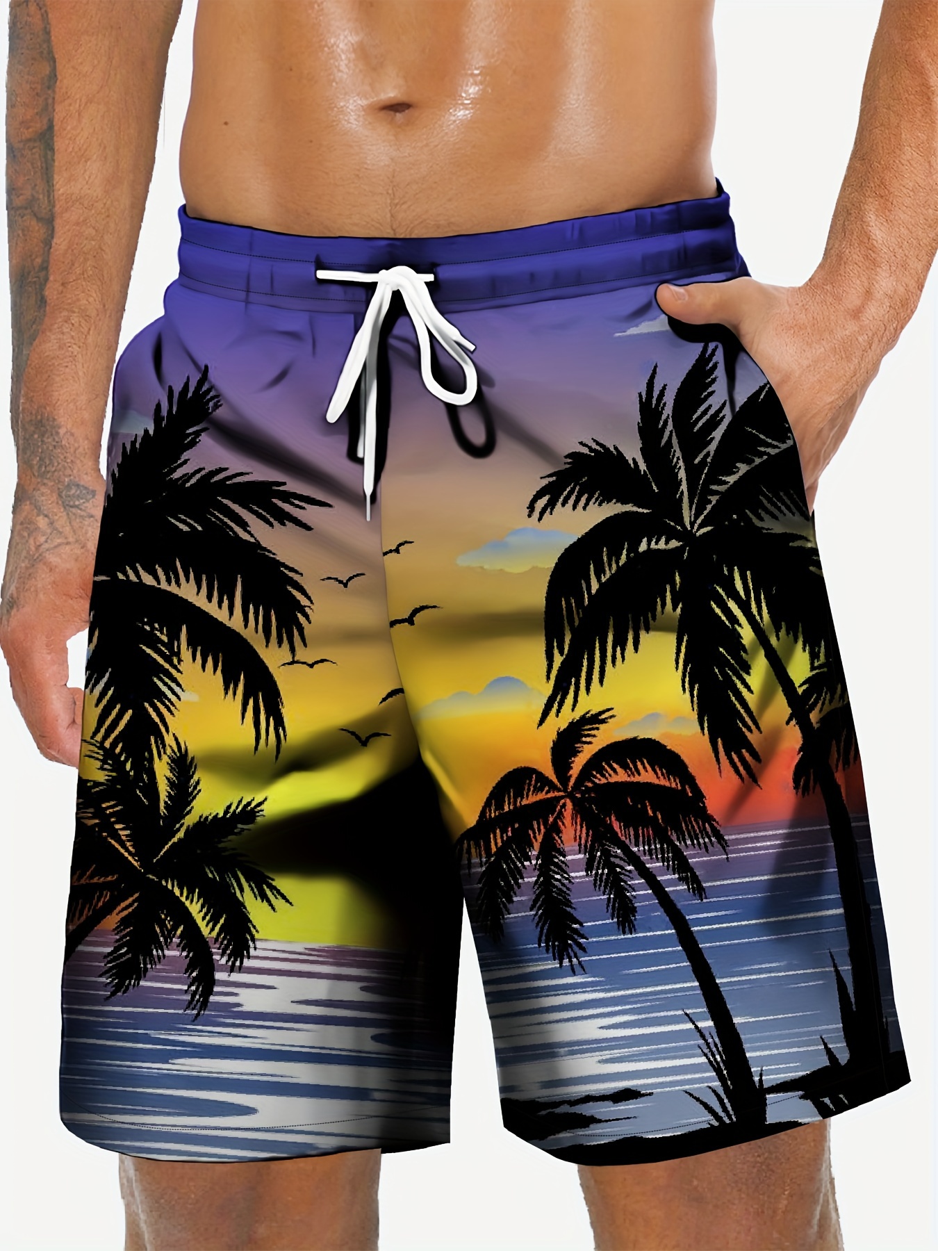 Design: Palm tree prints with a stylish drawstring waist.