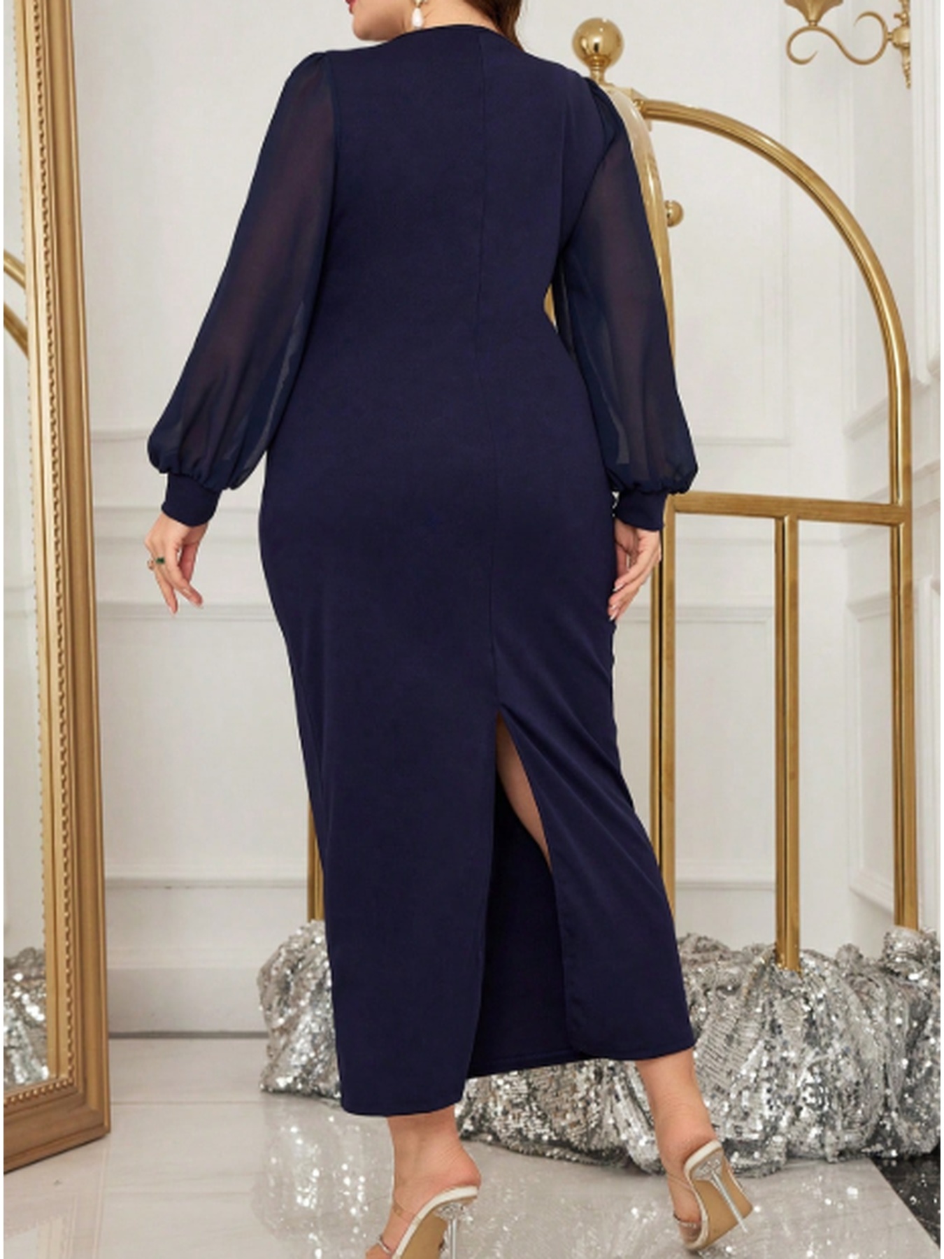 Whether you’re attending as a wedding guest, dressing up for a formal evening gala, or seeking a curvy plus size prom dress, this navy blue floor-length gown will make you stand out with elegance and grace.