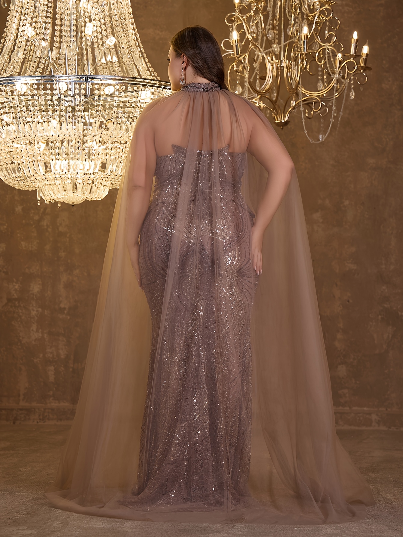 Plus Size, Beaded Sequin Lace Elegant Sexy Off-shoulder Bustier Mermaid Fishtail Skirt with Mesh Petals for Evening Events