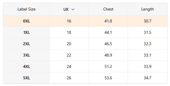 Suitable types: Oversized