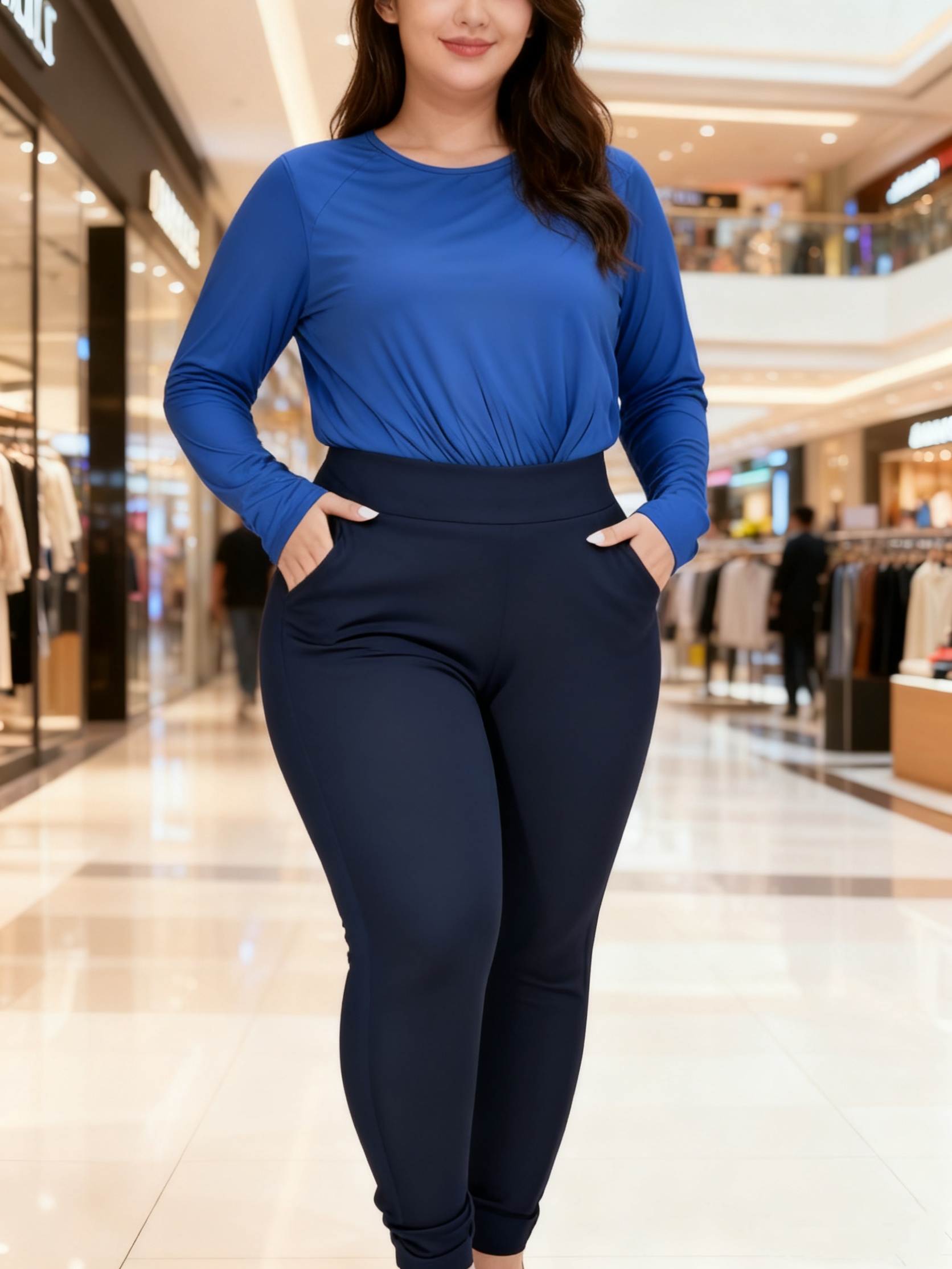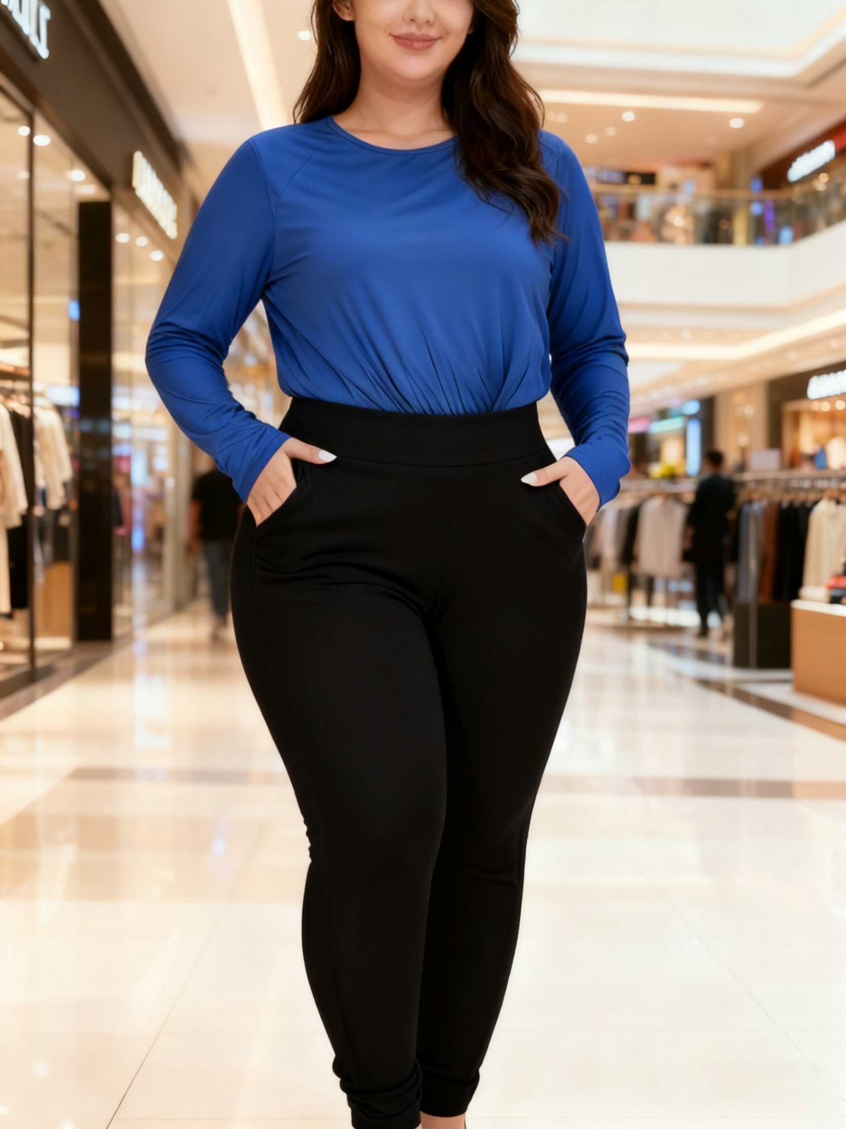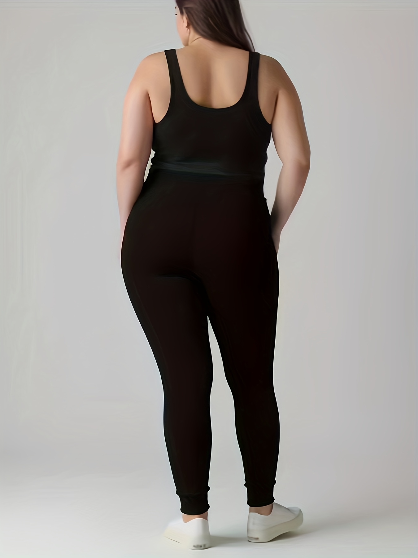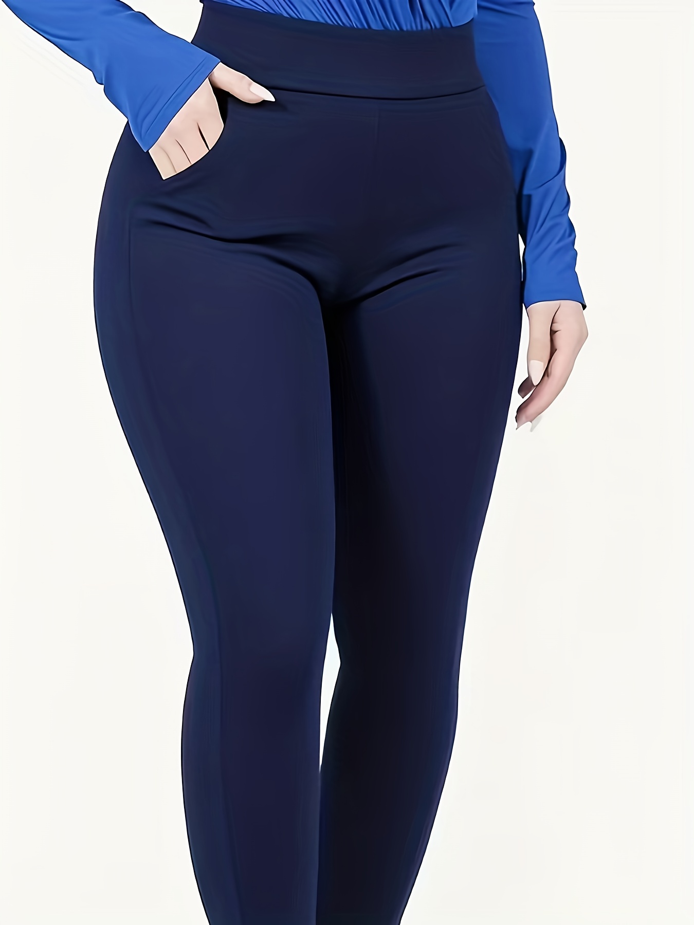 Plus Size – Plus Size – Plus-Size Casual Solid Pocket High-Waisted Fitted Pants, Pants, Leggings