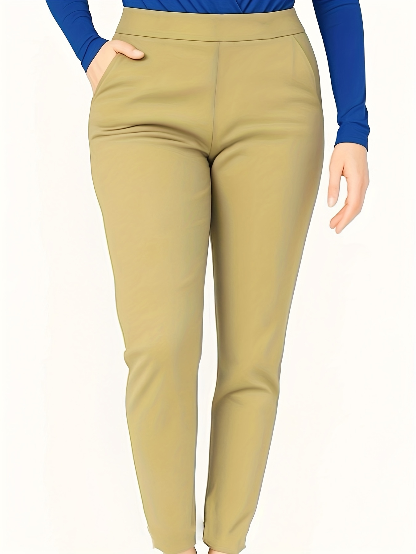 Plus Size – Plus Size – Plus-Size Casual Solid Pocket High-Waisted Fitted Pants