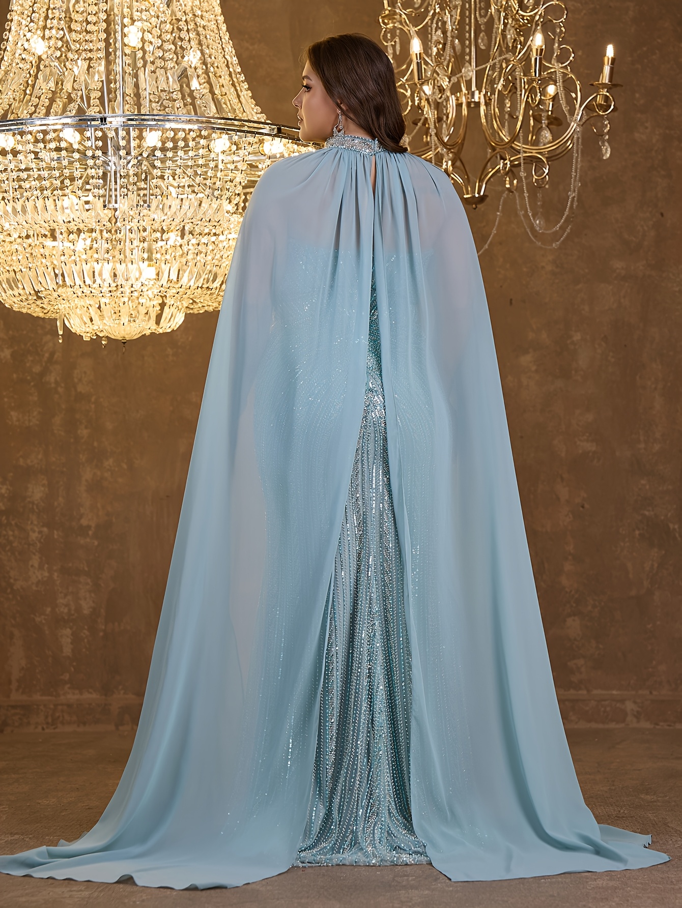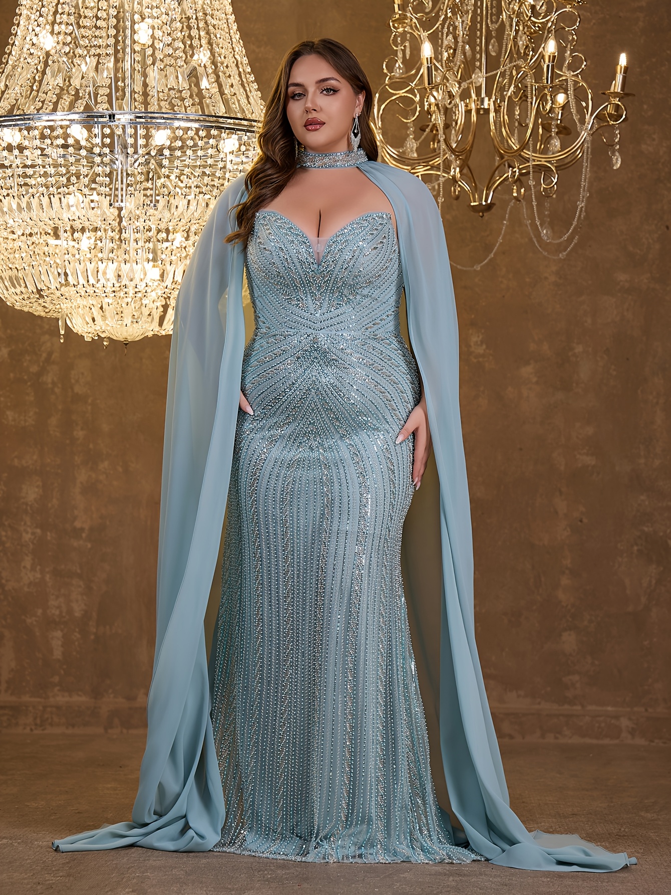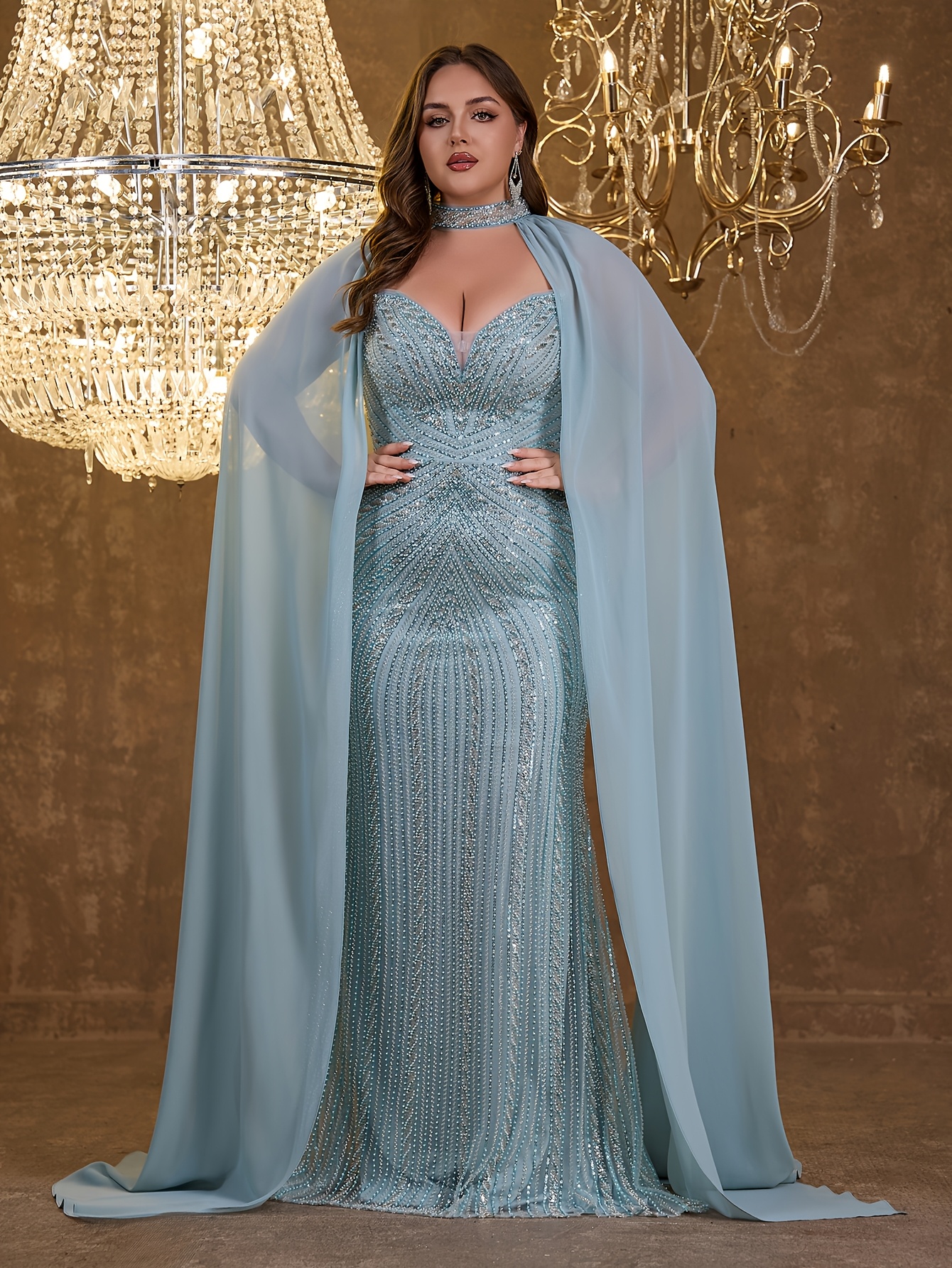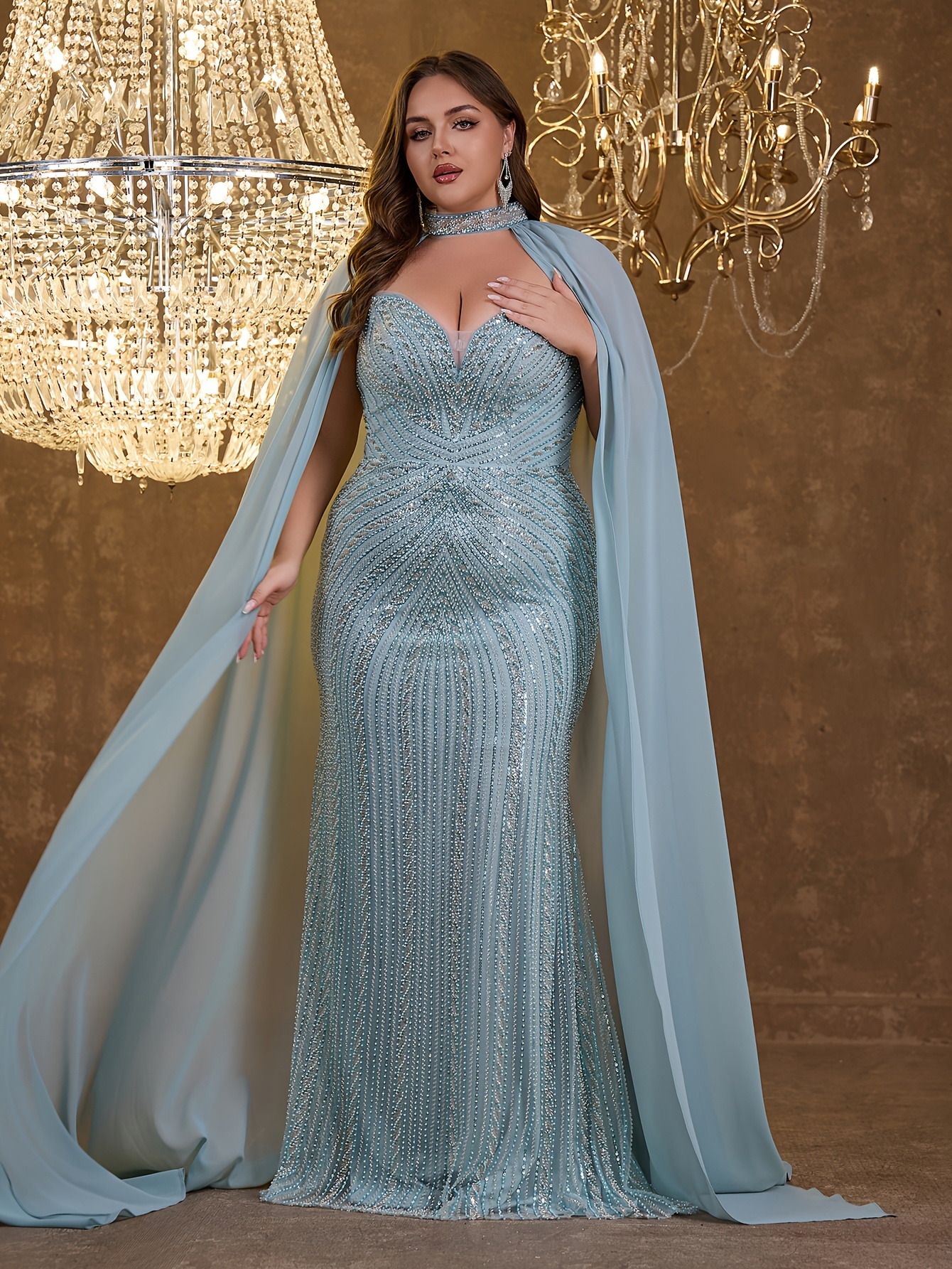 Plus Size, Plus Size Women’s Evening Gown: Elegant & Sexy Chiffon Flared Hem with Beads, Sequins, Embroidery – Fitted Mermaid Style for Weddings, Galas, Holidays, Roostertails & Parties