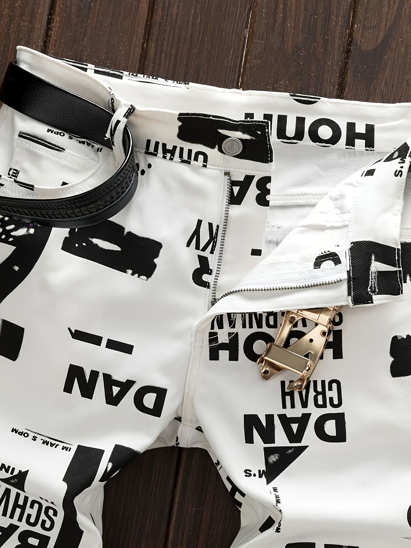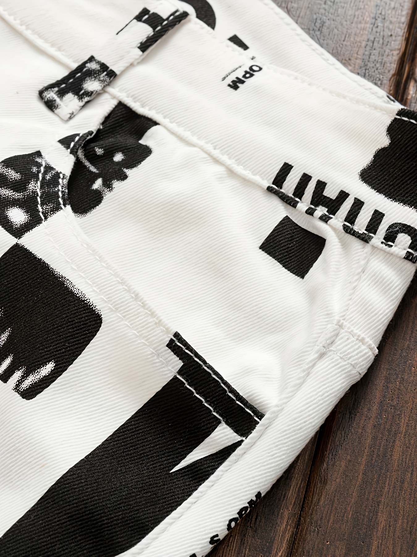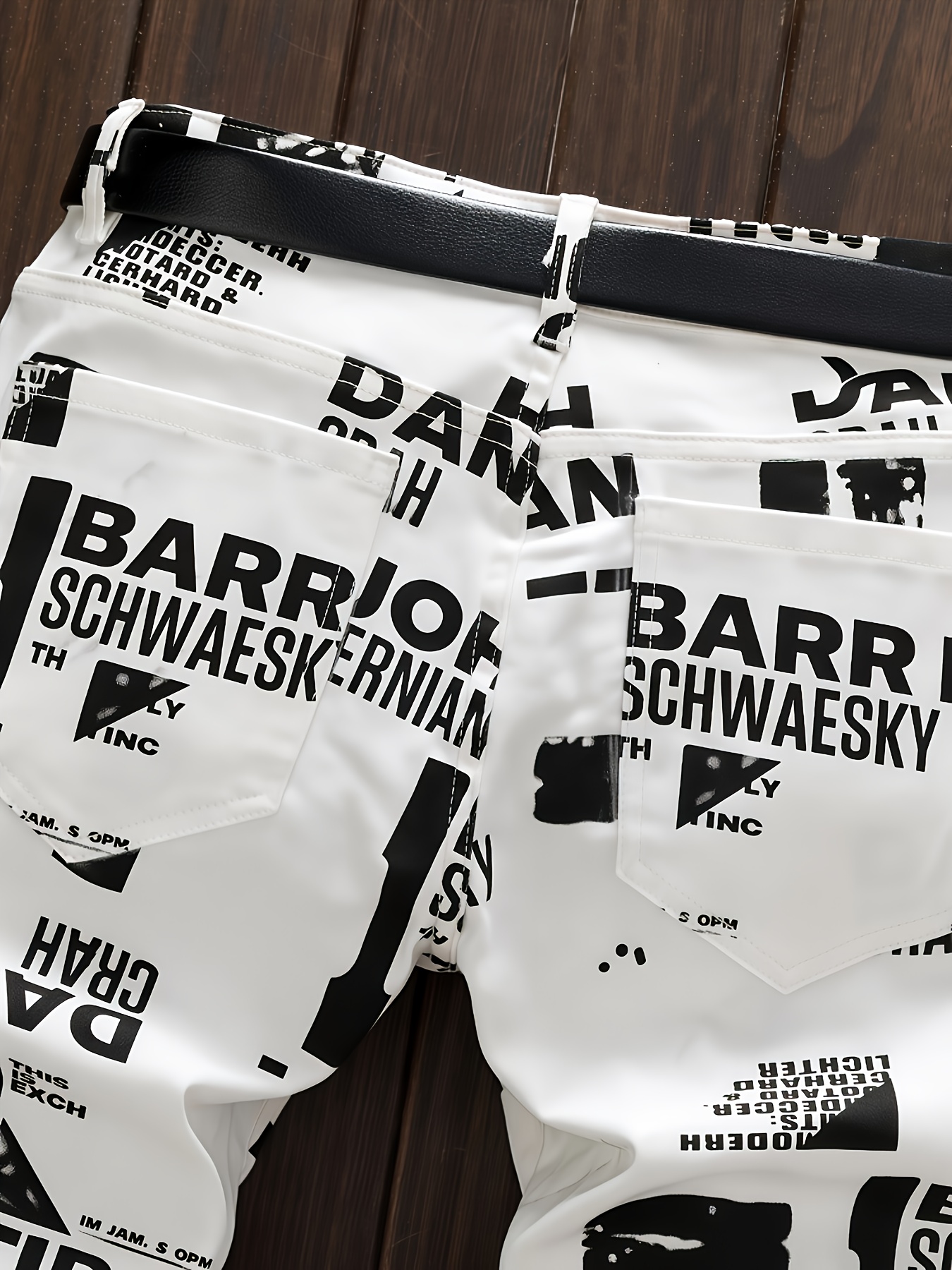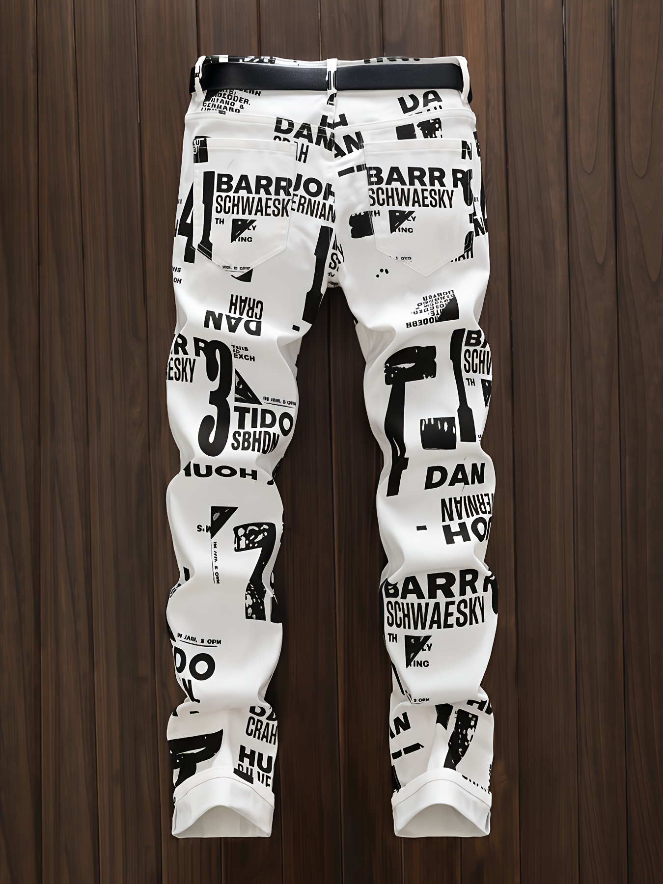 tylish Men’s Contrast Color Letter and Paint Mark Print Slim Fit Jeans, Trendy and Fashionable for Streetwear and Casual Outfits