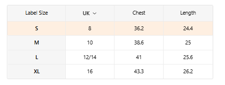 - Size Guide in Images