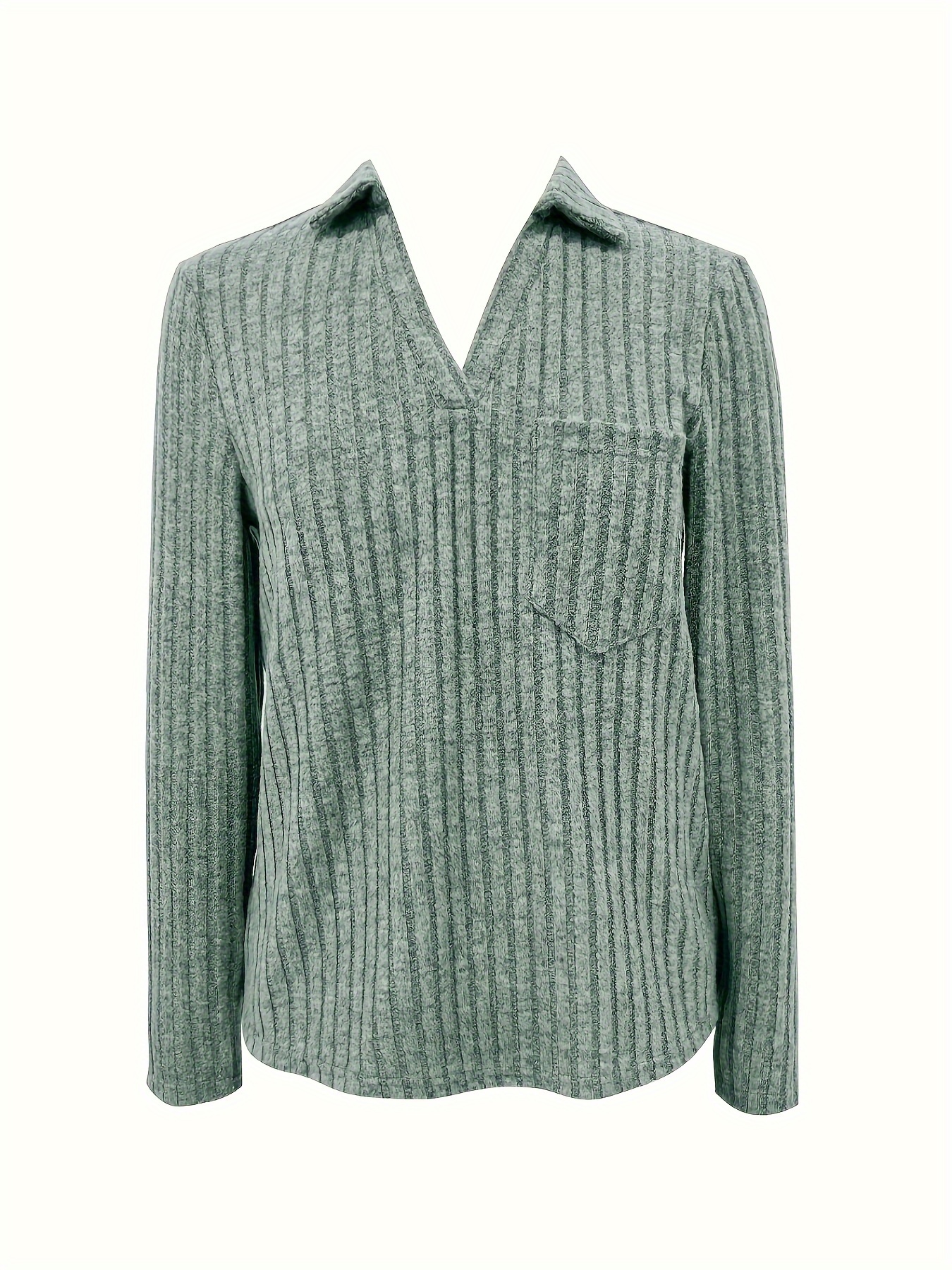 Women’S Casual V-Neck Top – Long Sleeve, Solid Green, Ribbed Texture, Lightweight & Breathable for Spring/Summer/Fall, Spring Fashion Tee | Vneck Design | Construction, Ladies T Shirts