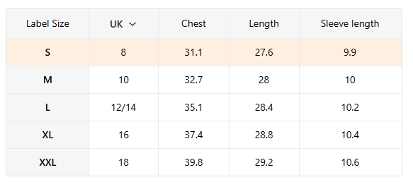 - Size Guide in Images