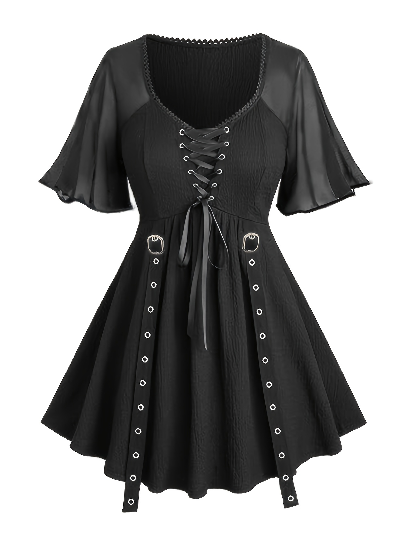 Women’s Gothic Shirt Skull Mesh Butterfly Sleeve Lace-up Pleated Top