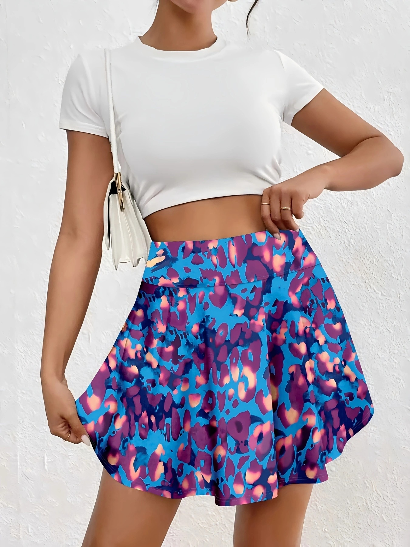 Women’s High-Waisted Skirt Shorts with Phone Pocket – Blue & Purple Camo Print Stretchy Shorts, Machine Washable All-Season Casual Wear for,, Parties & Everyday Outfits – Multi-Functional Shorts with Pockets