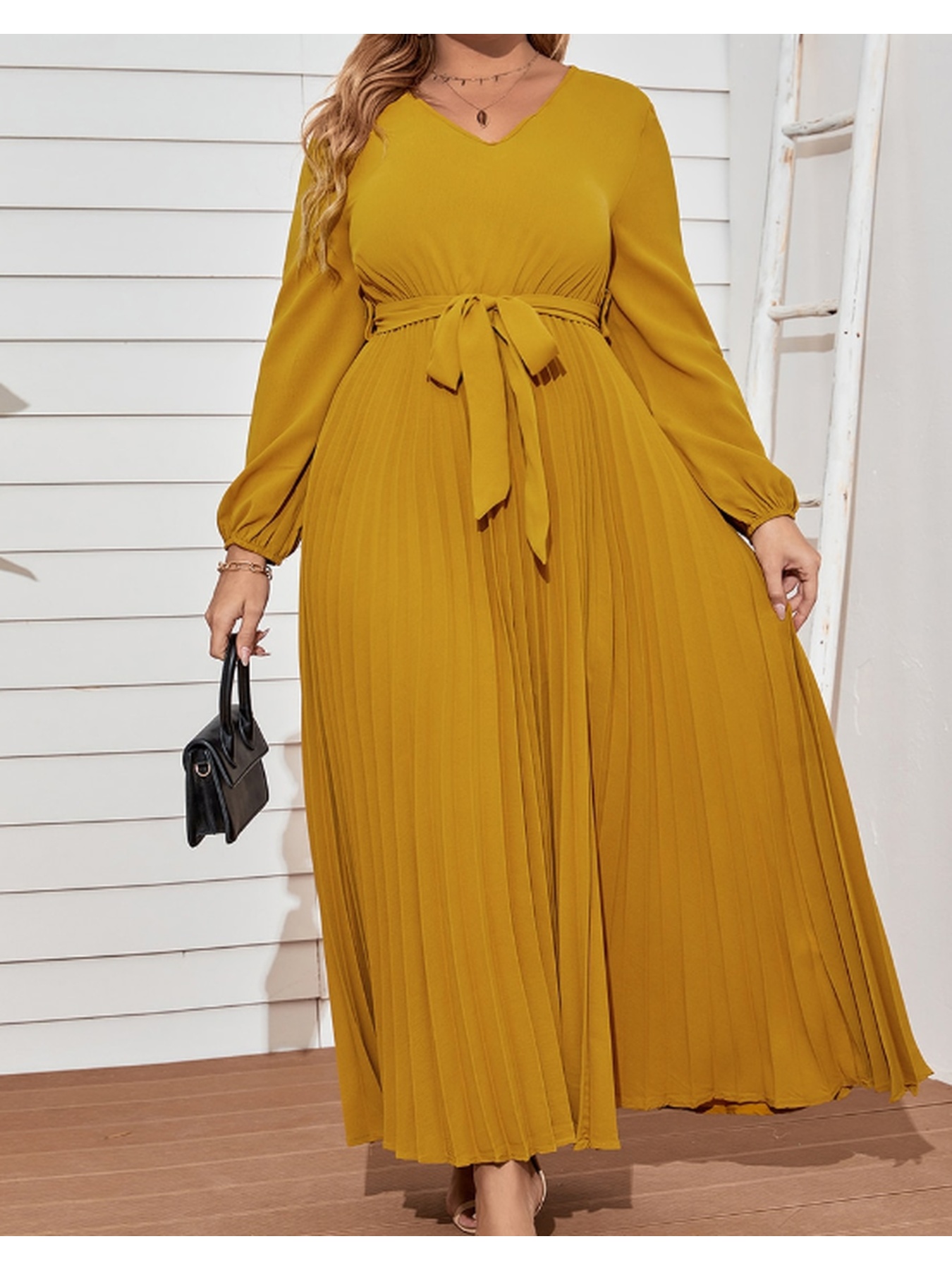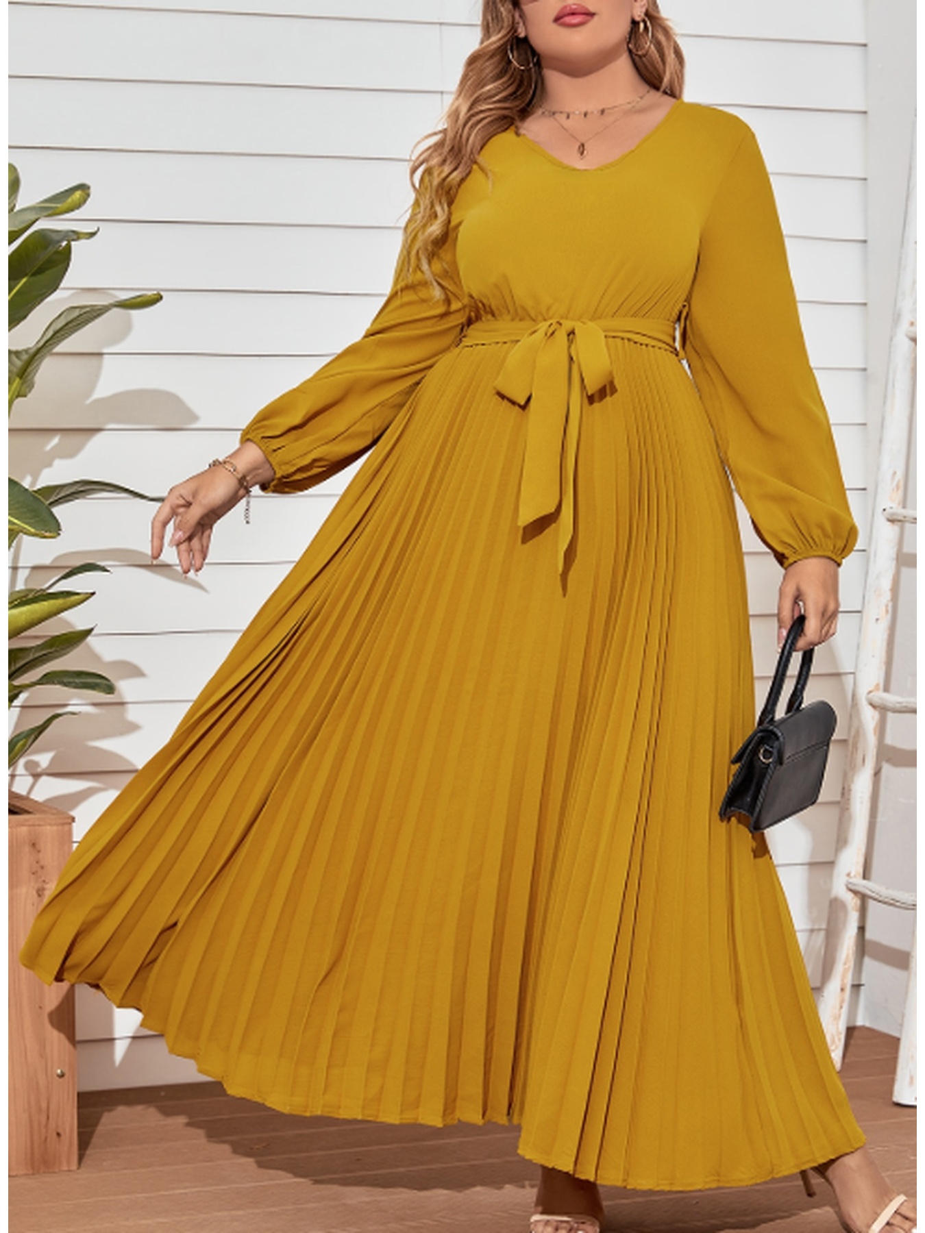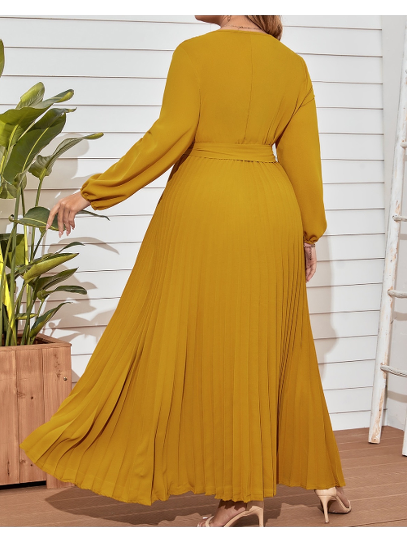 Make a statement in this Plus Size Mustard Yellow Maxi Dress, designed with an A-line silhouette, long sleeves, and wrinkle-resistant fabric – perfect for weddings, parties, and elegant events.